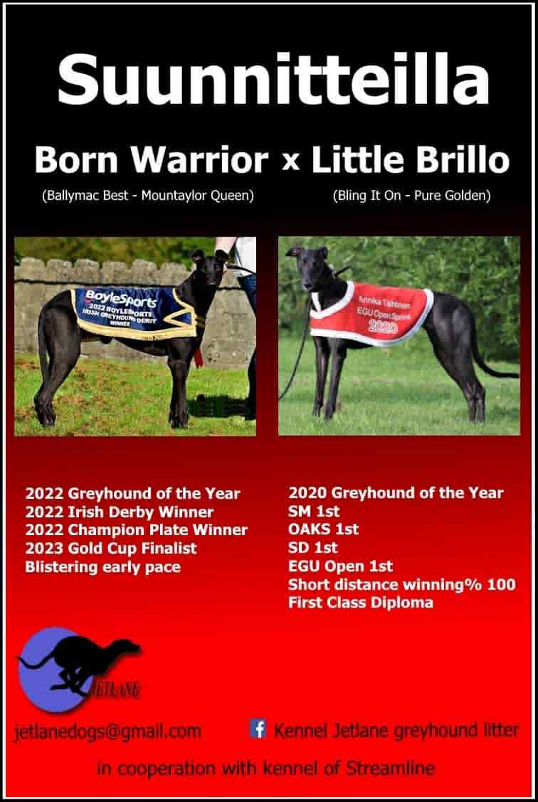 Turun Greyhound Klubi ry:n jäsenistöön kuuluvien harrastajien kahdestakin kennelistä syntyi komeat greyhound-pennut loppuvuonna 2025. Marraskuun alussa pentuja tuli Kennel Jetlaneen ja joulukuun jälkipuolella Whiskersiin. Jetlanen kaikki 8 pentua ovat tätä kirjoitettaessa maailmalla.